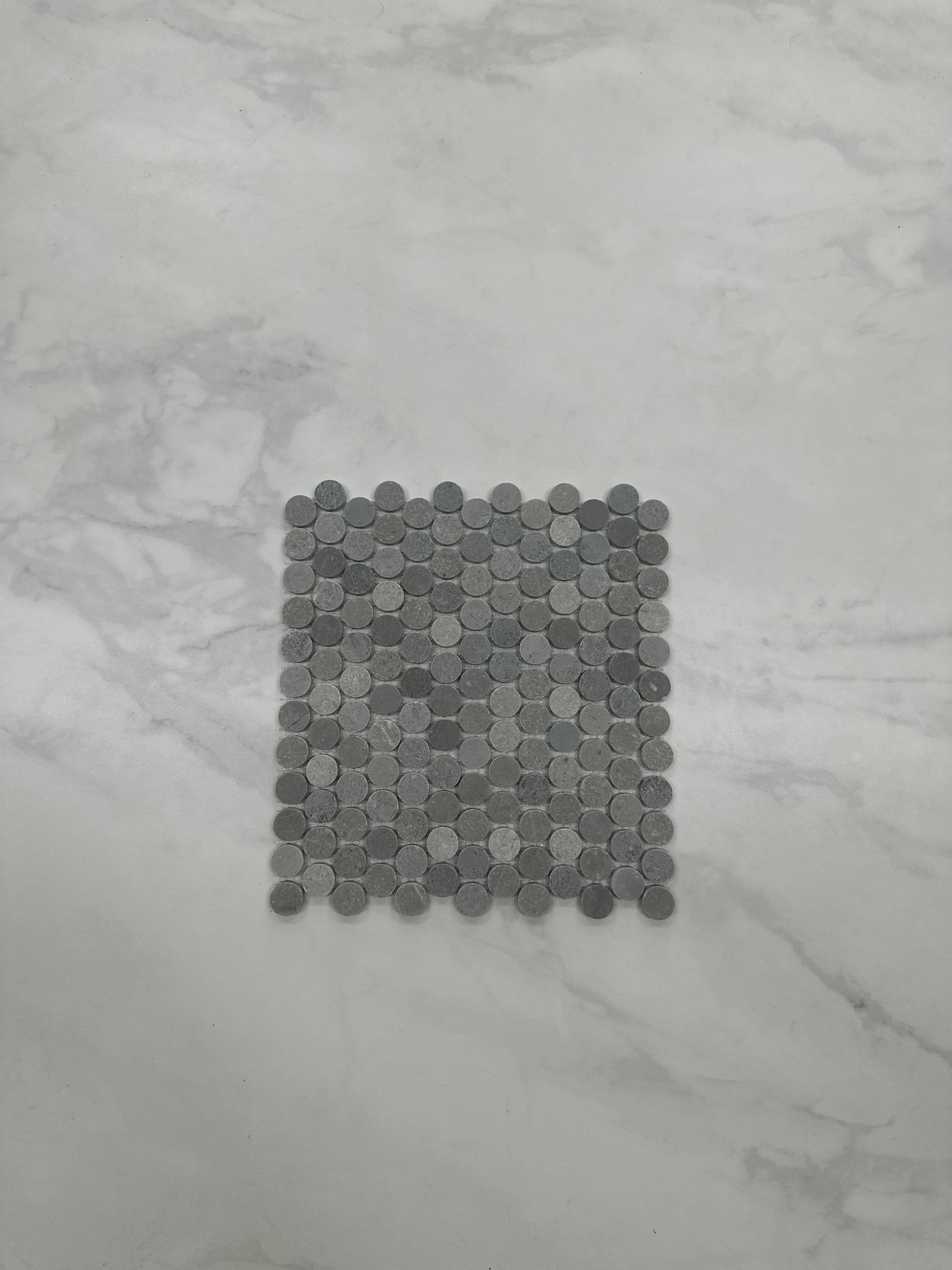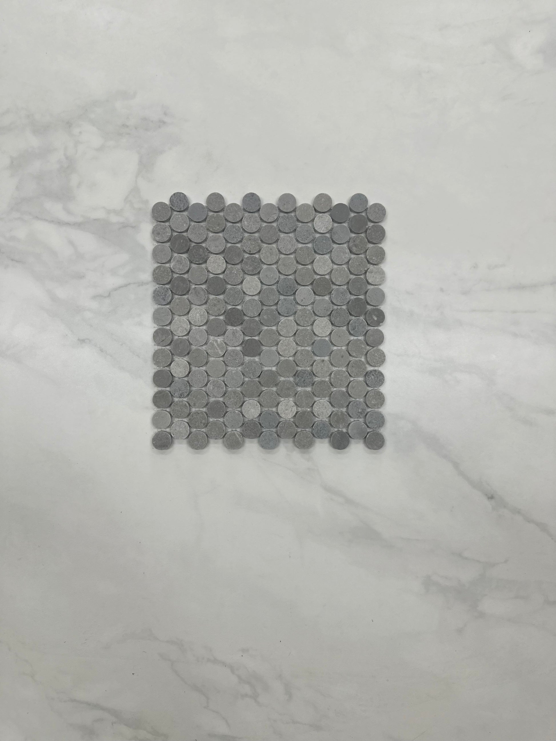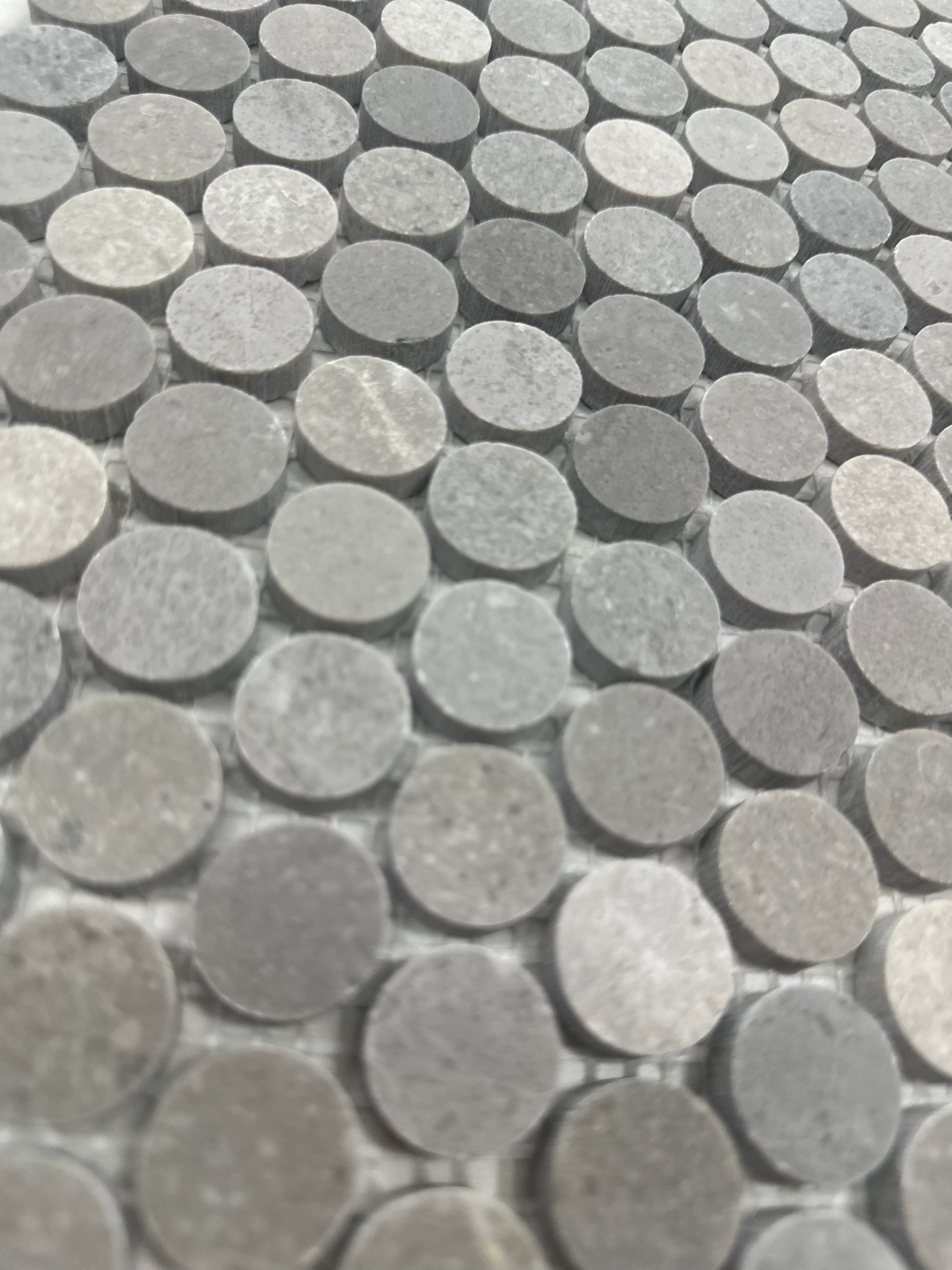 Add subtle texture and modern elegance with the Silver Grey Marble Penny Round Mosaic. Featuring a blend of soft silver and mid-grey natural marble tones, this mosaic creates a refined and contemporary look while maintaining the timeless appeal of stone. The tonal variation across the penny-round pieces adds gentle movement and depth without overwhelming the space.